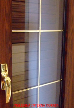 - Inglesina interna dorata: tra i due vetri, nello spazio della canalina viene posta una struttura agganciata alla canalina del vetro che disegna il vetro all' inglesina.