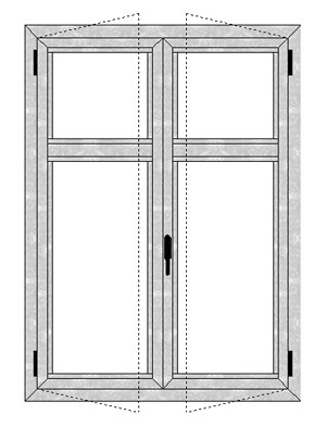 - L'apertura ad anta-ribalta è un sistema di chiusura che permette all'anta della finestra di rimanere aperta nella parte superiore ed ancorata al telaio nella parte inferiore. Questo tipo di apertura consente all'aria di entrare senza l' ingombro dell'anta all'interno e di aerare gli ambienti.