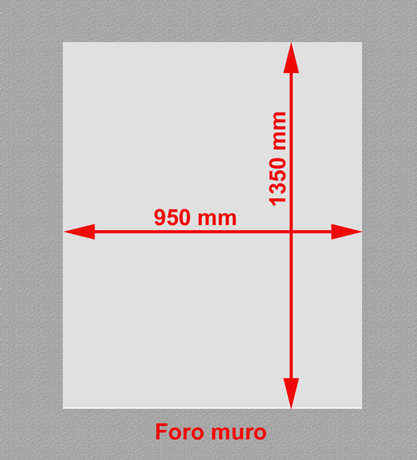 Prendiamo in esame come esempio un foro muro (o vano della vecchia finestra) con una larghezza di 950 mm e un'altezza di 1350 mm. Il foro muro può essere inteso come foro vero e proprio con telaio zincato a murare, oppure nella ristrutturazione il vano utile rimasto dopo aver rimosso le ante della vecchia finestra, per poi posare quella nuova. |