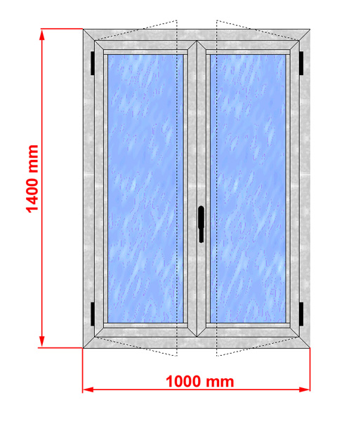 Con un serramento di larghezza 1000 mm e di altezza 1400 mm abbiamo una luce vetro in larghezza di 339 mm per anta e perciò un vetro nel complessivo di 680 mm. Questo vetro ha una misura di luce più ampia rispetto alle finestre che normalmente si possono trovare in commercio, questo grazie ai profili del serramento che sono molto più stretti.