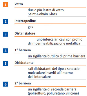 16 argon: canalina interna di larghezza 16 mm con intercapedine (distanza tra i due vetri di 16 mm) riempita di gas argon, gas ad alto potere isolante.