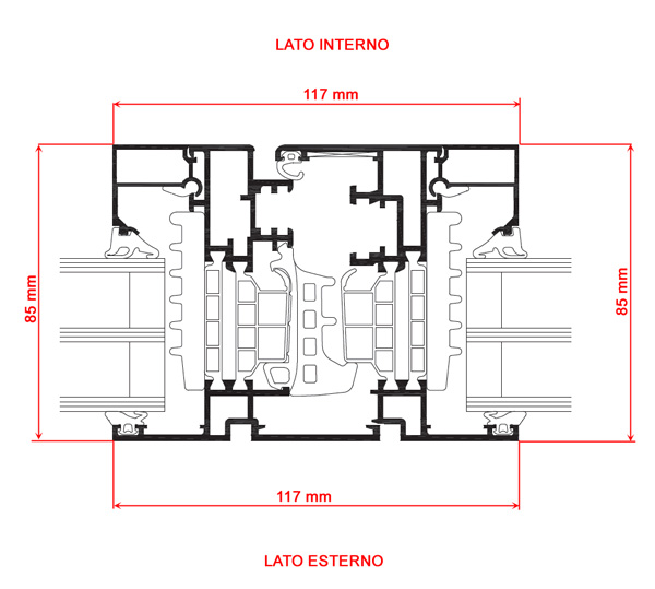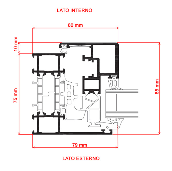 La Serie a Scomparsa WICONA 75 del Progetto Era è una linea di serramenti in alluminio senza alcuna sagomatura evidente, con l'anta a scomparsa nel telaio, in tal modo si può ottenere un'ampia superfice vetrata a tutto beneficio della luminosita degli ambienti. Come si puo vedere nel disegno quotato qui sotto la visibilita dell'anta in facciata è quasi nulla (pochi millimetri) nel caso della serie a scomparsa A mentre per quella a scomparsa B l'anta sarà completamente nascosta dal telaio.