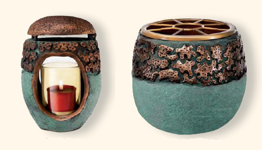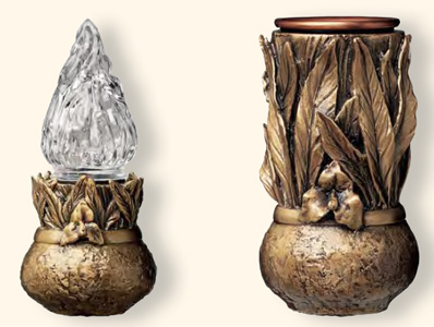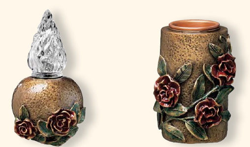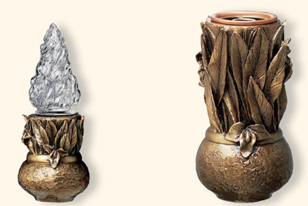 | Lampade a cero con attacco a terreno e portafiori coordinati. (fissaggio con perni) |