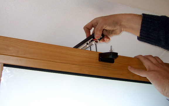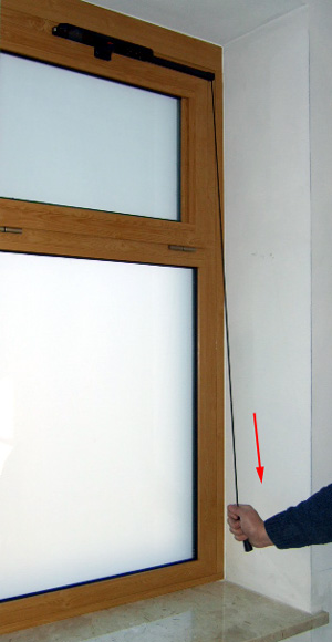 1. Apertura del vasistas tramite la cordicella, come si vede in figura l'operatore tira la cordicella verso il basso. |