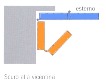 In questo caso, il montaggio dell’anta avviene sempre con cardini a muro.