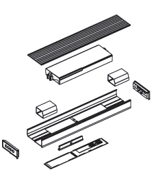 Componenti plastici della struttura del prodotto, escluso gruppo motore ventilatore, telecomando, filtro, portelle motorizzate e cover in alluminio lato esterno. 1