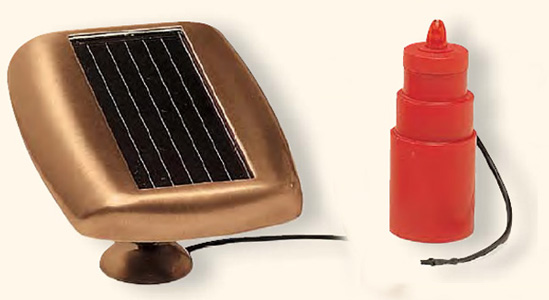 Funzionano autonomamente grazie ad un sisteme composto da un pannello solare e da una batteria accumulatrice di energia. La sola luminosità del giorno è sufficiente per alimentare l'apparato. La fiamma è dotata di una luce a intermittenza