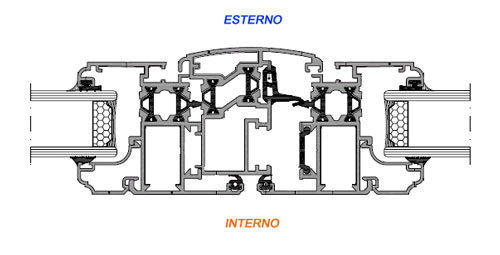 La sezione di serramento qui a fianco raffigurata ci descrive come si e evoluto il serramento in questi anni. Un serramento dove non esiste più lo scambio termico dell' interno con l' esterno, detti anche a "Taglio Termico".